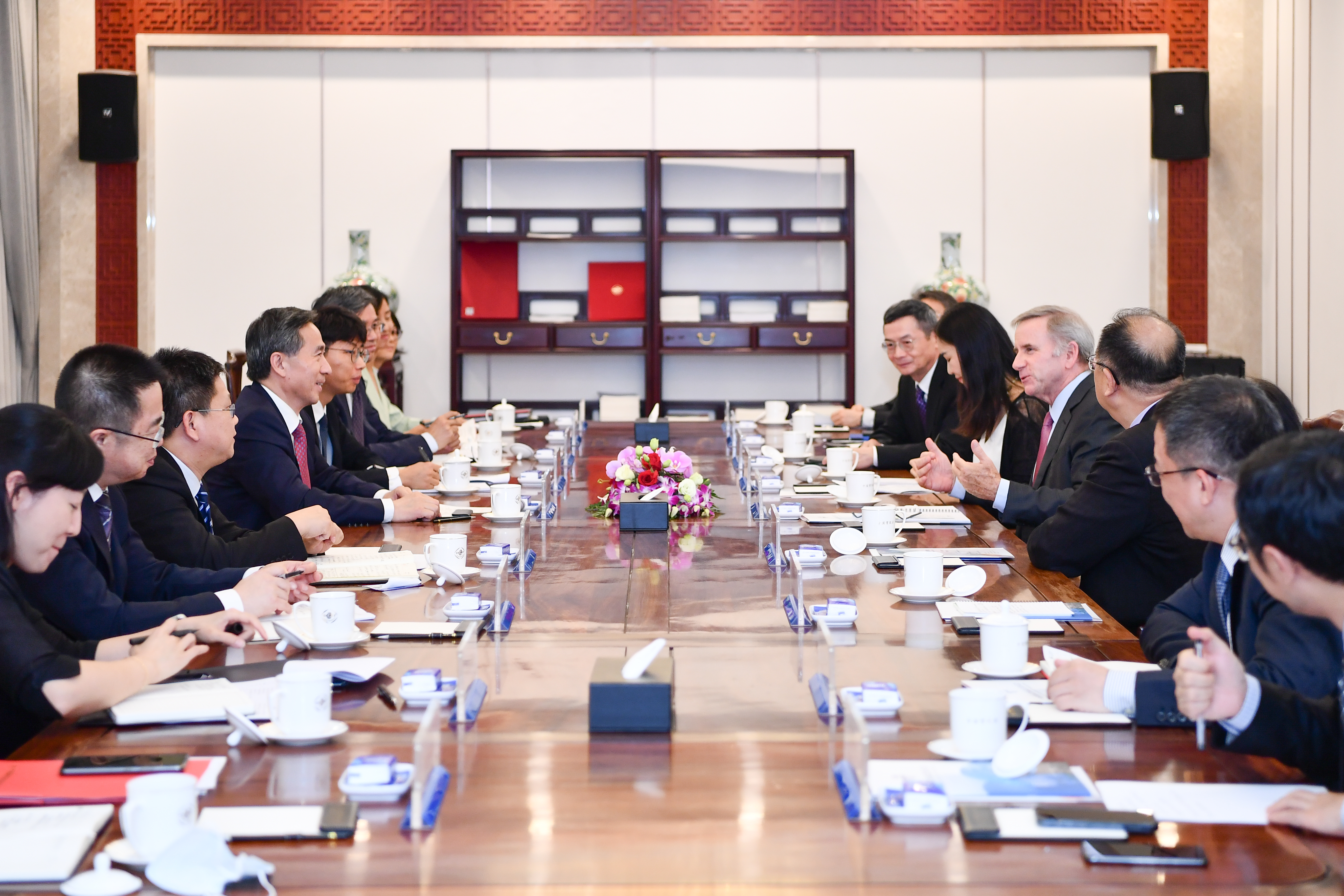 7月12日,中国贸促会会长任鸿斌在京会见美国高通公司全球事务总裁亚历克斯·罗杰士,双方就高通公司在华业务发展、加强中美工商界务实合作、参与首届中国国际供应链促进博览会等议题探讨交流。
