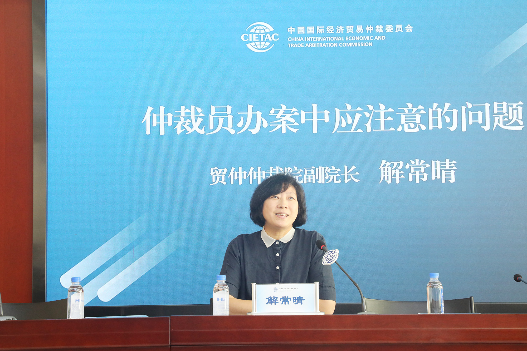 贸仲委仲裁院副院长解常晴以实际案例分析了仲裁员在办案中可能遇到的各种突发情况及风险,提示仲裁员在办案中应注意的各项问题和应对方法,强调了仲裁员应严守的职业操守和责任。