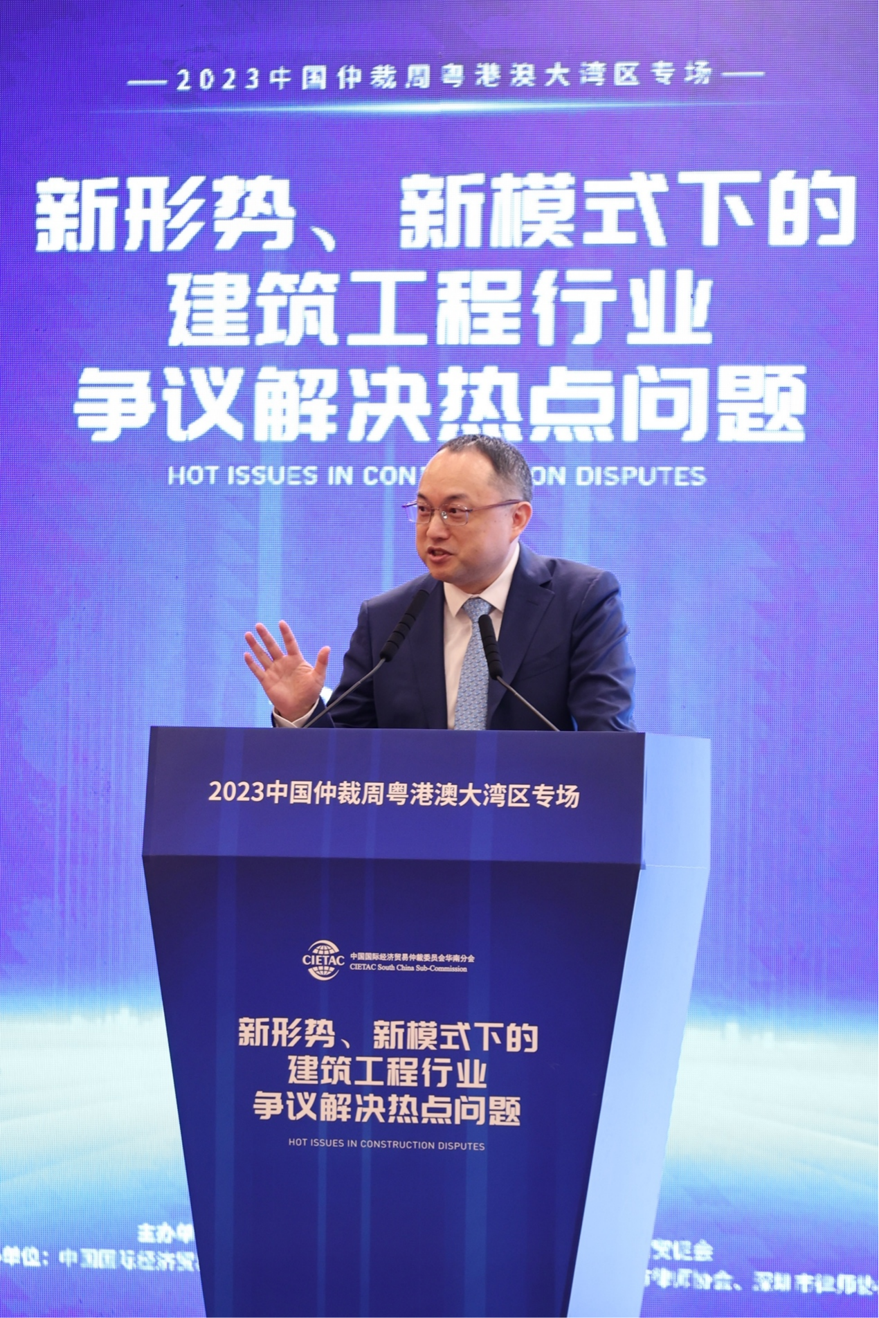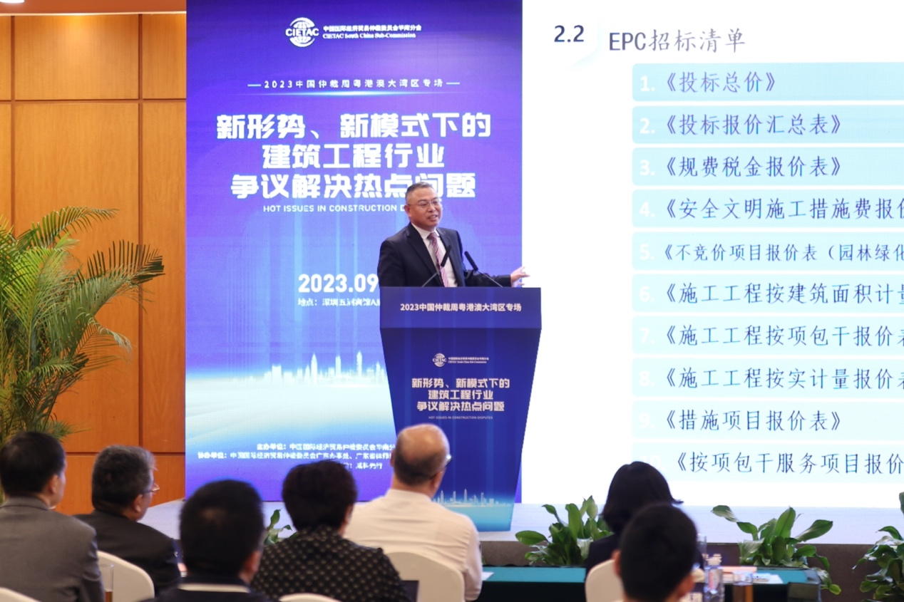 2023年9月1日,由中国国际经济贸易仲裁委员会华南分会(以下简称“贸仲华南分会”)、广东省贸促会联合主办,中国国际经济贸易仲裁委员会广东办事处、广东省律师协会、广州市律师协会、深圳市律师协会、深圳建筑业协会协办,威科先行支持的“新形势、新模式下的建筑工程行业争议解决热点问题”——2023中国仲裁周粤港澳大湾区专场活动在深圳成功举办。本次专场活动旨在深度分析行业热点,在新形势、新模式下讨论建筑工程领域最前沿、最热点法律问题,为行业健康发展贡献力量。本次活动吸引近两百名来自广东、广西、湖南等多地的仲裁员、律师、学者、公司法务及各界人士线下参加,逾4500人通过在线直播平台参加本次活动。广东省贸促会党组成员、副会长邱招贤、贸仲华南分会秘书长李云、广东省律协仲裁专业委员会主任赵汉根以及深圳市律师协会会长张斌出席活动并致开幕辞。会议由贸仲华南分会秘书长助理张晓宇主持。