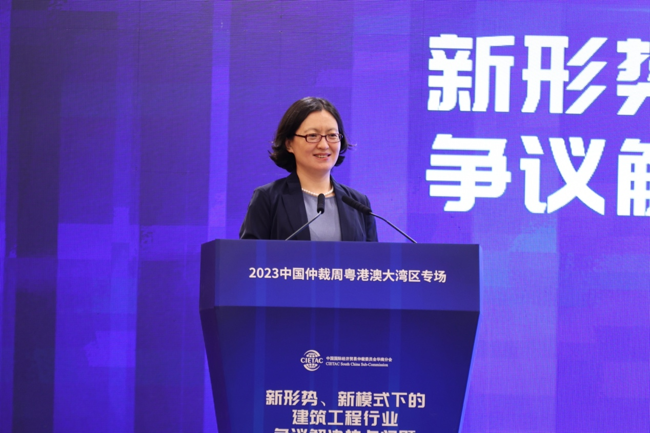 贸仲华南分会秘书长李云代表主办方贸仲华南分会致开幕辞。她介绍了贸仲近三年来受理的建筑工程案件具体情况以及贸仲在建设工程领域争议解决方面的优势,并表示,贸仲华南分会将进一步发挥资源优势,加强合作交流,提升建筑工程领域法律服务水平,为争议的妥善解决、行业健康发展贡献力量。