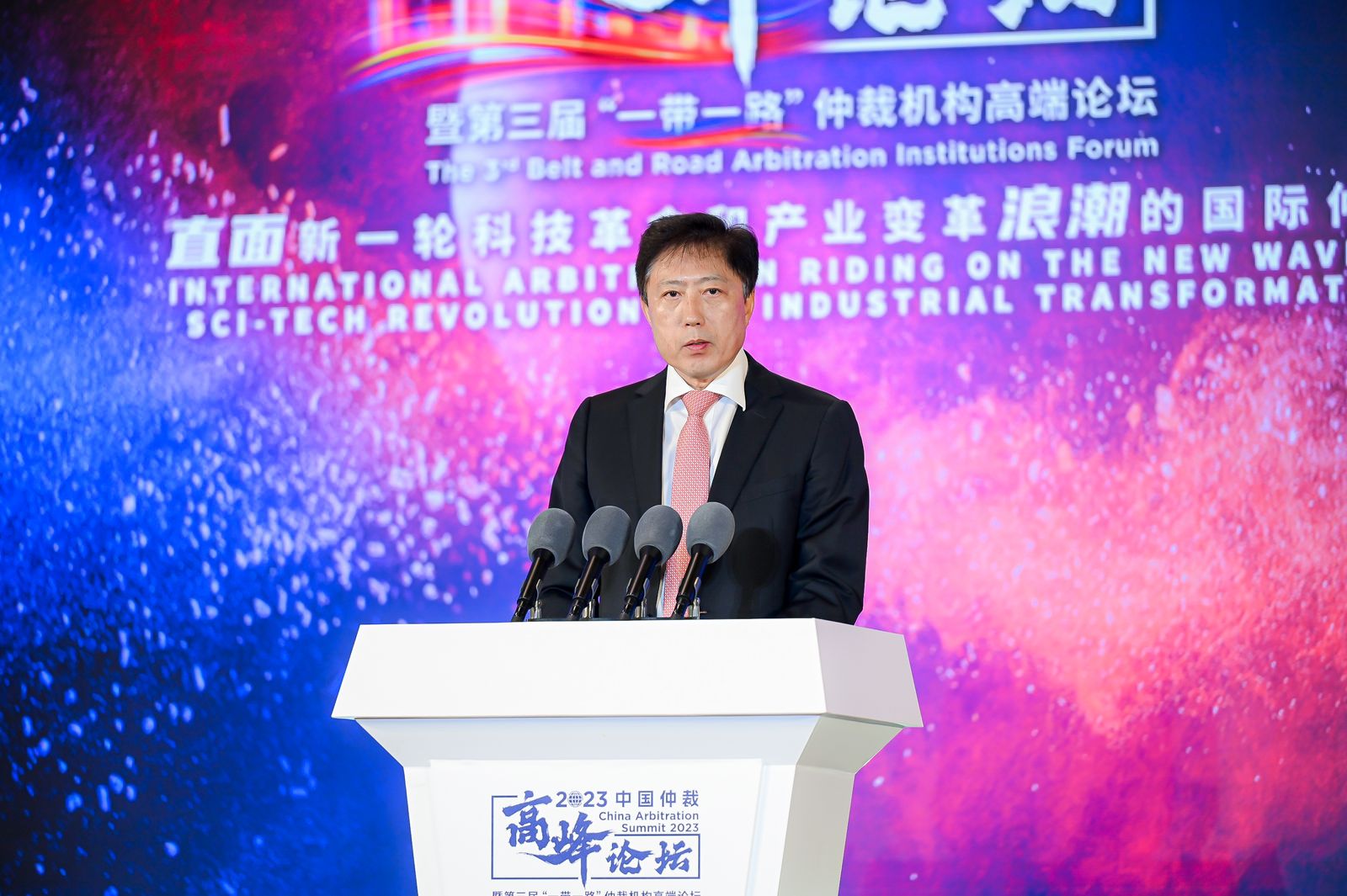 9月6日,2023中国仲裁高峰论坛暨第三届“一带一路”仲裁机构高端论坛在京成功举办。本次论坛由中国国际经济贸易仲裁委员会(CIETAC,简称“贸仲”)与联合国国际贸易法委员会(UNCITRAL,简称“联合国贸法会”)共同主办。中国国际贸易促进委员会副会长、中国国际商会副会长于健龙,联合国贸法会秘书长Anna JOUBIN-BRET女士,最高人民法院审判委员会副部级专职委员、二级大法官刘贵祥出席开幕式并致辞。司法部副部长王振江发表视频致辞。最高人民法院民四庭副庭长张树明发表主旨演讲。司法部公共法律服务管理局一级巡视员孙春英,北京市高级人民法院副院长张雯,以及北京市第四中级人民法院、北京市金融法院、中华全国律师协会等相关领导出席开幕式。贸仲副主任兼秘书长王承杰主持开幕式。