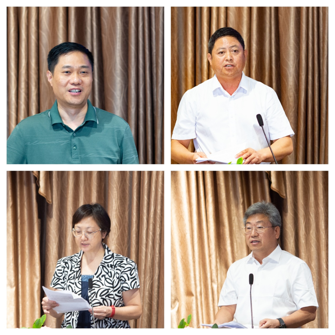 (开幕致辞,左上为徐志国会长、右上为胡帮新二级调研员、左下为龙洁主任委员、右下为王甲国总法律顾问)