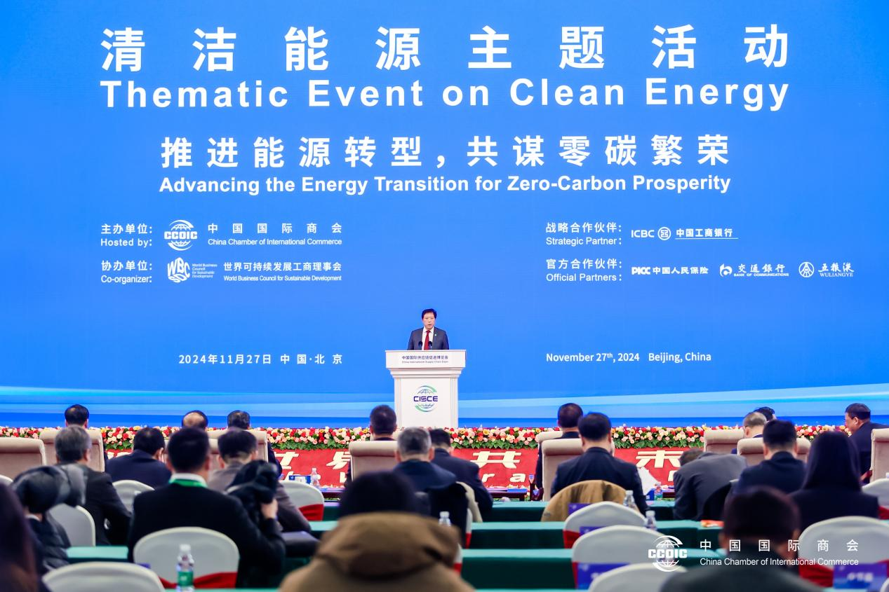 11月27日上午,第二届中国国际供应链促进博览会清洁能源主题活动在京成功举办。中国贸促会副会长、中国国际商会副会长于健龙,国家能源局党组成员、总经济师鲁俊岭,世界可持续发展工商理事会会长贝德凯出席并致辞。