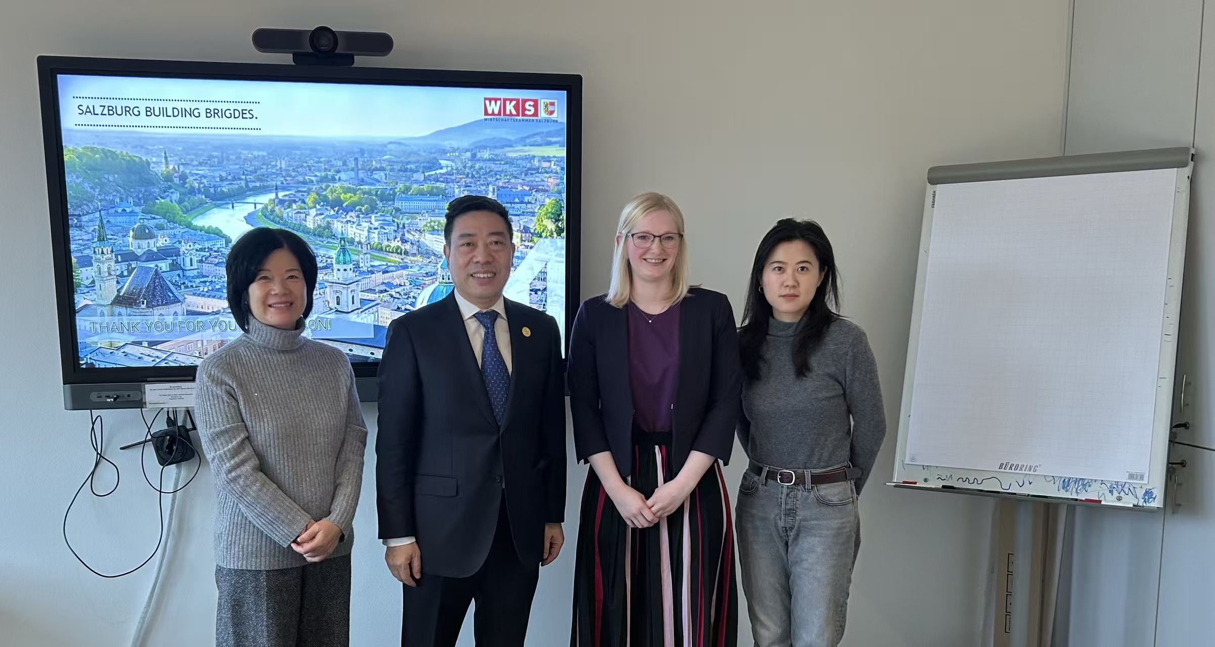 11月26日,总代表刘振华和代表助理张孛尔赴萨尔茨堡市,会见萨尔茨堡州商会国际关系部法务专员Philippa Roberts和萨尔茨堡州政府中国事务办事厅办公室主任严建珍。