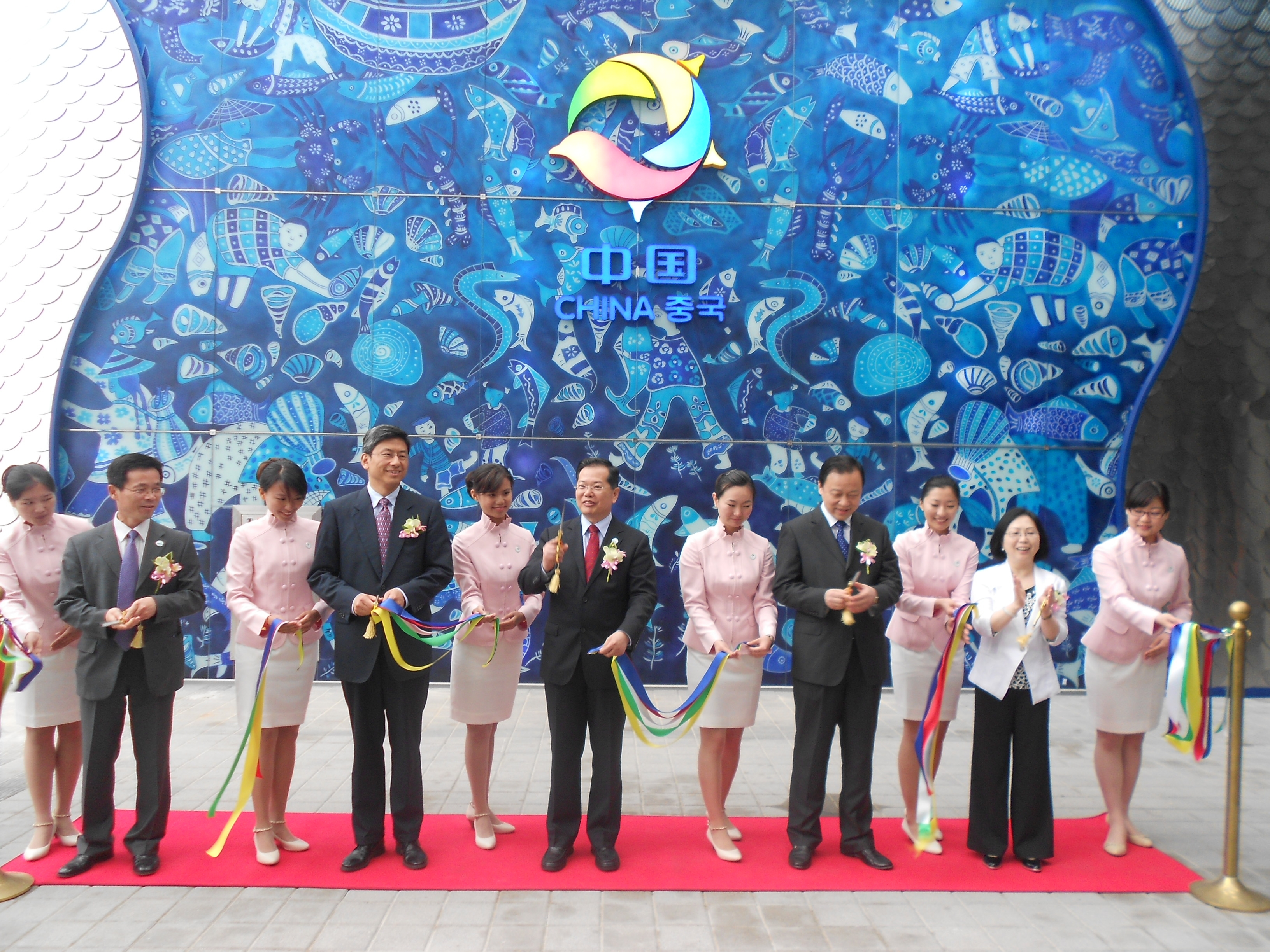 中国馆位于太平洋展区,展馆面积约1241平方米,是面积最大的外国馆。中国馆以“人海相依”的主题,选取“中华白海豚”为主线,创新展览形式,围绕海洋和海岸的开发与保护、海洋科技、海洋文化三个角度进行展示。中国馆展览展示符合世博理念,体现了以人为本、环境友好的时代精神,展现中国海洋发展理念和海洋事业发展风貌,达到国际较高水准,塑造良好国家形象:从儿童心目中的海洋世界到人海共生的影片《海歌》,从传统特色的渔民画到中华白海豚,从蛟龙号潜水器到南极冰芯,中国馆以独特的创意和文化,体现了科技的力量和人文的精神,向全世界传递着“人海相依”的和谐理念,展示了中国人民无穷的智慧和海一样广阔的胸怀。
