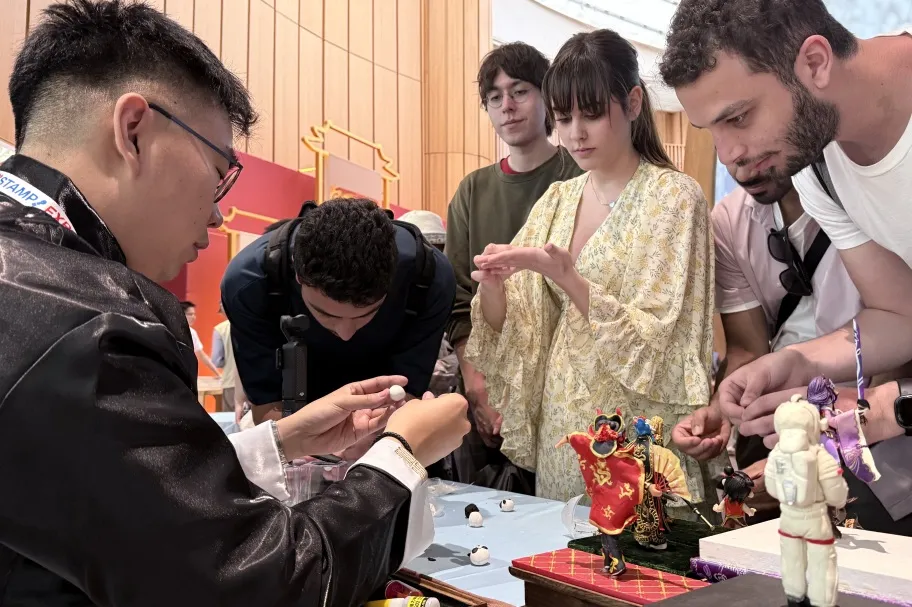 北京面人郎、哈氏风筝、御笔坊制笔三项国家级非遗传承人现场授课,参与者亲手创作,近距离领略非遗文化与魅力。全景中轴、数字中轴、人文中轴三大展区交相辉映,中外观众通过打卡集章、北京中轴线点位AI合影、沉浸式观影等多种形式,了解北京中轴线的历史文化价值和保护传承成果,感受中华文化独特魅力与深厚底蕴。