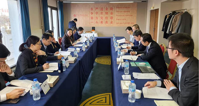 2022年12月22日 ,法中工商会在华天中国城召开第三届理事会第三次会议。会议由法中工商会会长、中国银行巴黎分行行长何立勤主持。中国驻法大使馆经商处公使沈翔出席会议并讲话。第三届理事会理事及代表出席会议。
