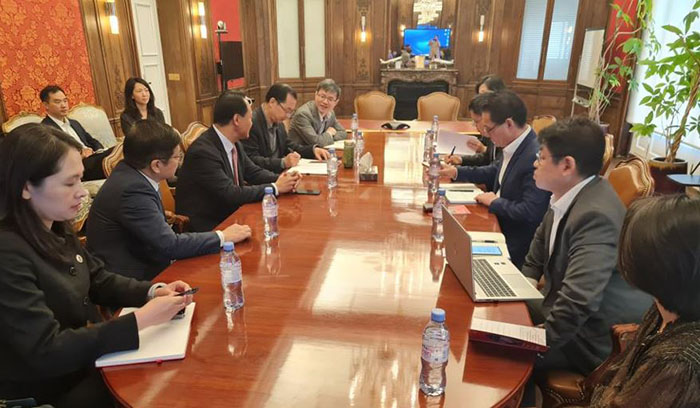 法国中国工商会秘书长、中国贸促会驻法国代表处代表李文国主持会议。李文国秘书长介绍了商会基本情况和近期工作、此次交流会议议程以及国际金融论坛有关情况,希望以中法建交60周年为契机,探讨商会金融行业委员会与国际金融论坛开展合作事项。