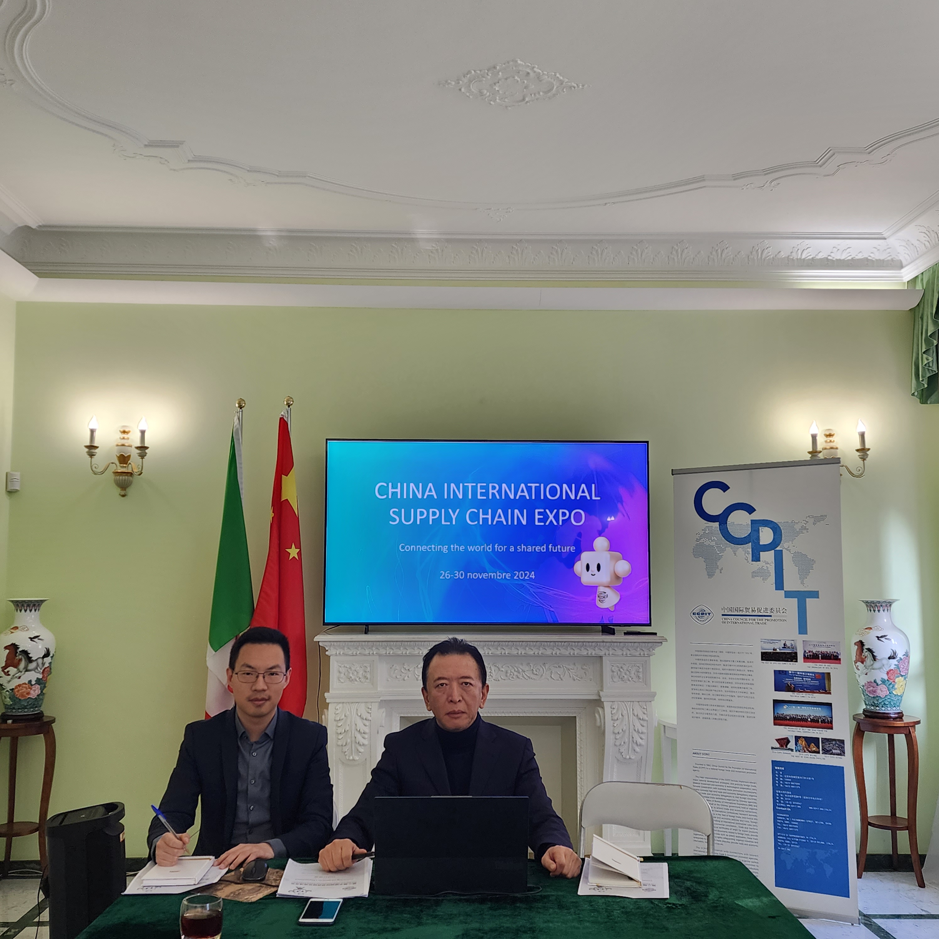 姚鲁杰总代表介绍了首届链博会成果,来自美国、欧洲及日韩等55个国家和地区的上百家全球知名跨国企业参展参会,国际参展商比例高达26%。他提到,意大利企业应该抓住第二次链博会的时机,设立意大利国家展馆,向中国市场展示其在清洁能源、健康生活等各个领域的特色产品,为其会员深度挖掘B2B商务合作机遇。
