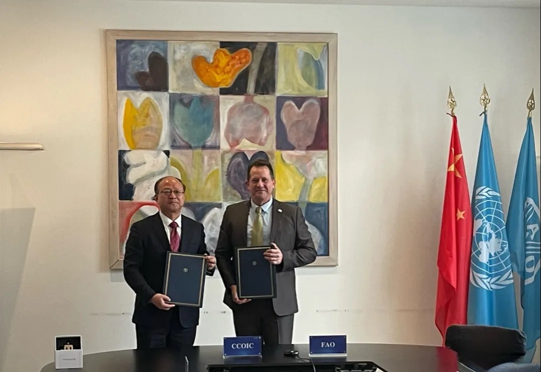 3月26日,中国国际商会与联合国粮食及农业组织谅解备忘录交换仪式在意大利罗马举办。中国贸促会副会长、中国国际商会副会长陈建安出席活动并致辞。