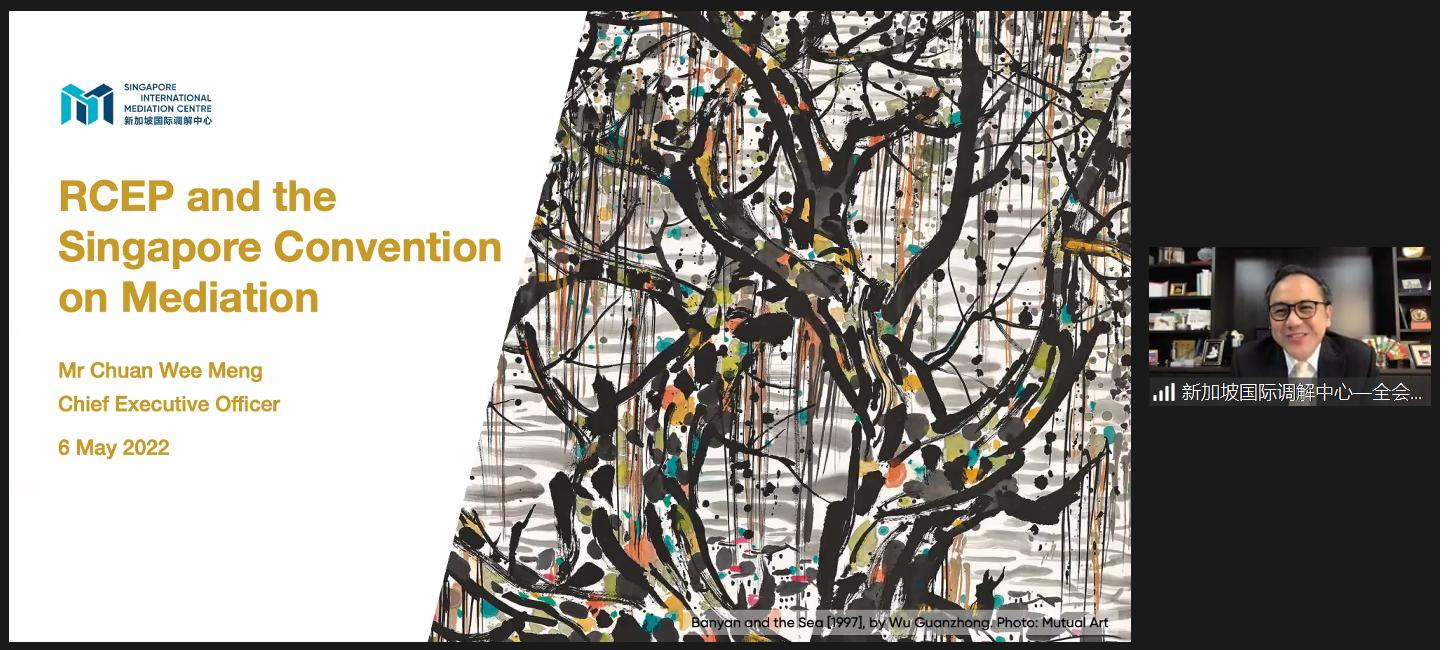 新加坡国际调解中心总裁全会民先生的讲座主题为“RCEP和新加坡调解公约”。全会民先生表示,根据 RCEP 协定第 19.7 条,调解是公认的争端解决形式。《新加坡调解公约》能让经调解的和解协议可以在国际范围内被执行。《新加坡调解公约》于2019年8月7日在新加坡开放签署,此后在纽约联合国总部签署,2020年9月12日生效,不仅针对调解和调解实践量身定制,而且适应了不同的法律传统。在本次的讲座中全会民先生分享了国际商事调解的内容以及《新加坡调解公约》和调解机构间其他现有跨境机制的各种执行途径。这些努力不仅有助于建立以多边规则为基础的全球经济,而且还有助于通过司法正义促进商业活动快速和谐的开展。